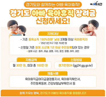 경기도 아빠 육아휴직 장려금 지금 신청하세요!