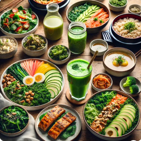 - 전통적 디톡스 식단: 김치, 된장국, 나물 반찬 등 발효 식품 활용