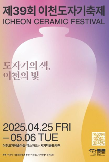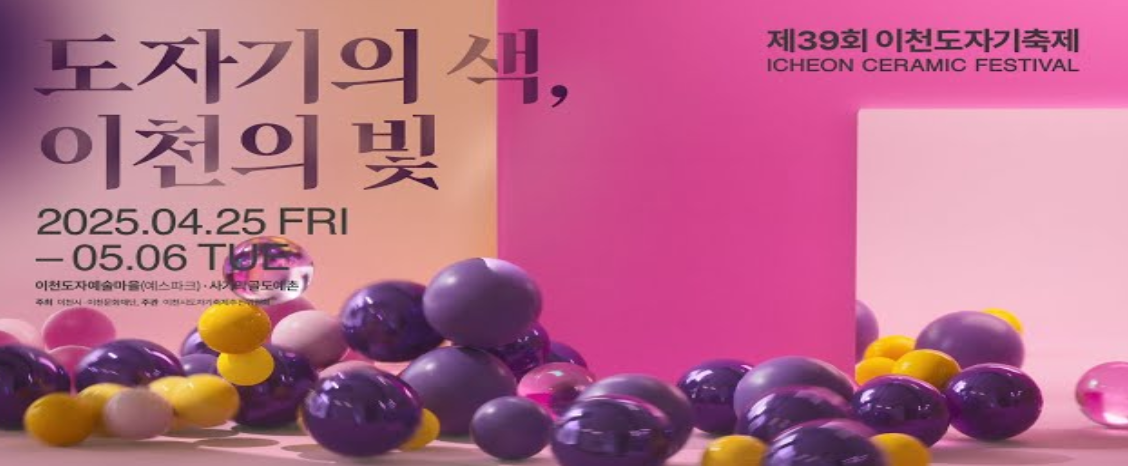 2025년 4월 25일부터 5월 6일까지, 경기도 이천시 이천도자예술마을과 사기막골도예촌에서는 제39회 이천도자기축제가 열립니다.